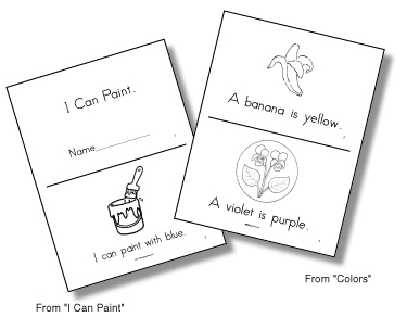 All the Emergent Reader books are available for immediate download in Adobe Acrobat Format. Once you have downloaded the files, print a Master Copy on standard 8.5 X 11 inch paper. The pages may then be copied front and back to 8.5 X 11 copy paper. To assemble, cut each page in half and staple on the left hand edge. They will make a book 8.5 X 5.5 inches in size. You can make a set for each student to assemble and color, or assemble them yourself as a classroom set.