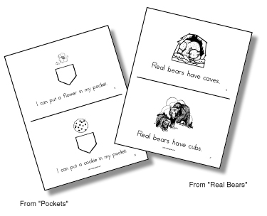 All the Emergent Reader books are available for immediate download in Adobe Acrobat Format. Once you have downloaded the files, print a Master Copy on standard 8.5 X 11 inch paper. The pages may then be copied front and back to 8.5 X 11 copy paper. To assemble, cut each page in half and staple on the left hand edge. They will make a book 8.5 X 5.5 inches in size. You can make a set for each student to assemble and color, or assemble them yourself as a classroom set.
